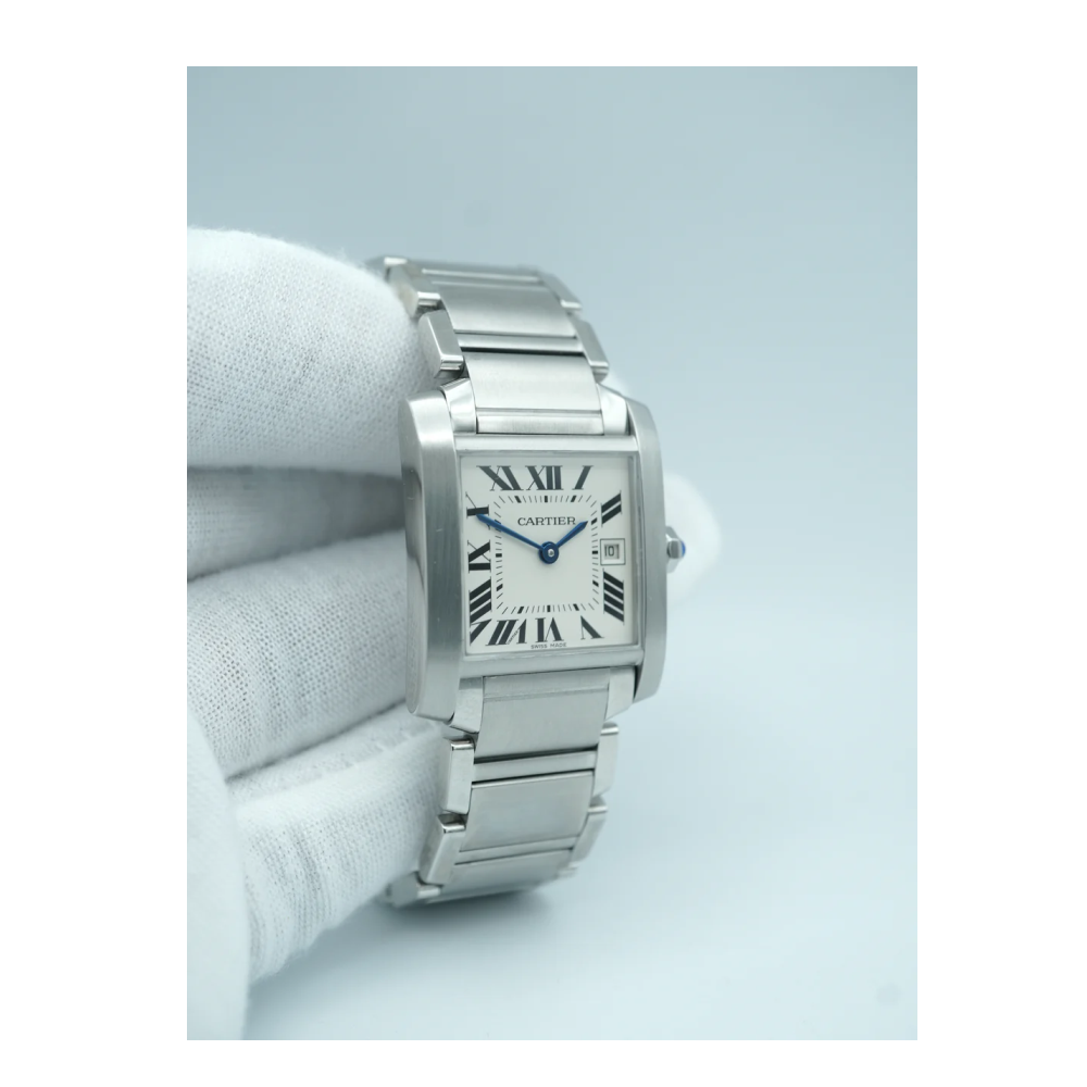Cartier W51011Q3 Tank Francaise White Roman Dial Quartz Movement Stainless Steel Complete Set 2012