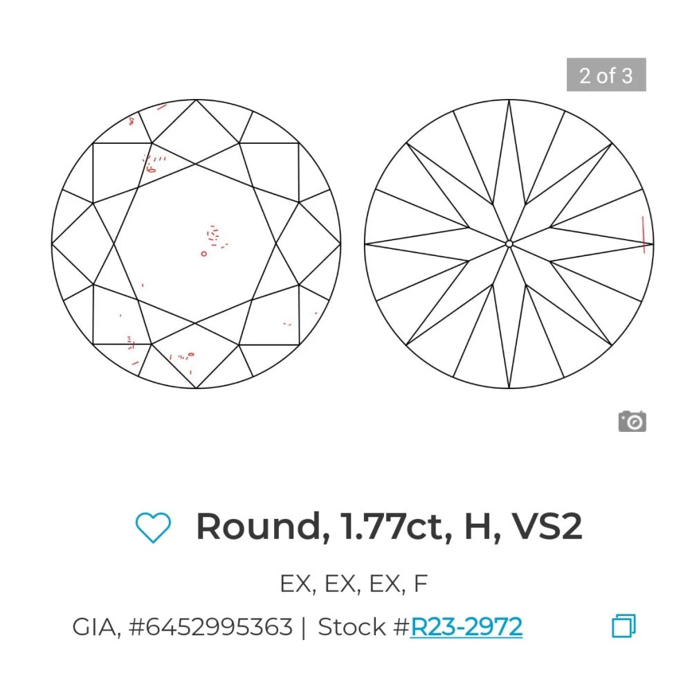 GIA 1.77 ct. Natural Round Diamond Solitaire Ring in 18k White Gold