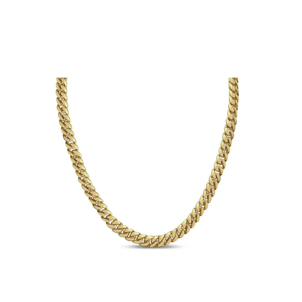 This 24-inch Miami Cuban link necklace in 14k yellow gold features bold 8.3mm links designed to make a confident, daring statement. Its sleek polish and strong presence deliver fearless style, perfect for men who want to stand out with edgy sophistication.