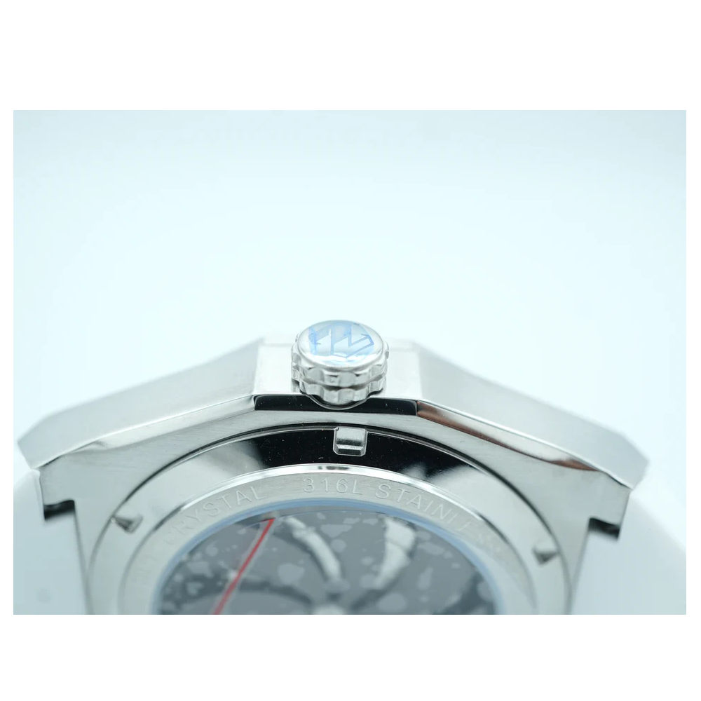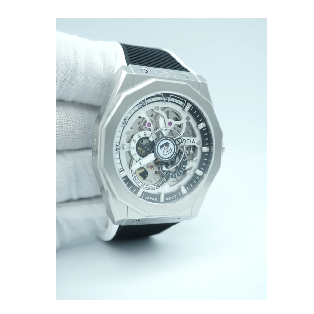 Experience refined craftsmanship with the Noda Aero Series1 43mm Steel Skeleton Watch. Featuring a white skeleton dial, this elegant timepiece reveals its intricate Japanese automatic movement, combining technical mastery with style. The durable steel case offers lasting appeal, making it a sophisticated choice for men who appreciate both form and function.