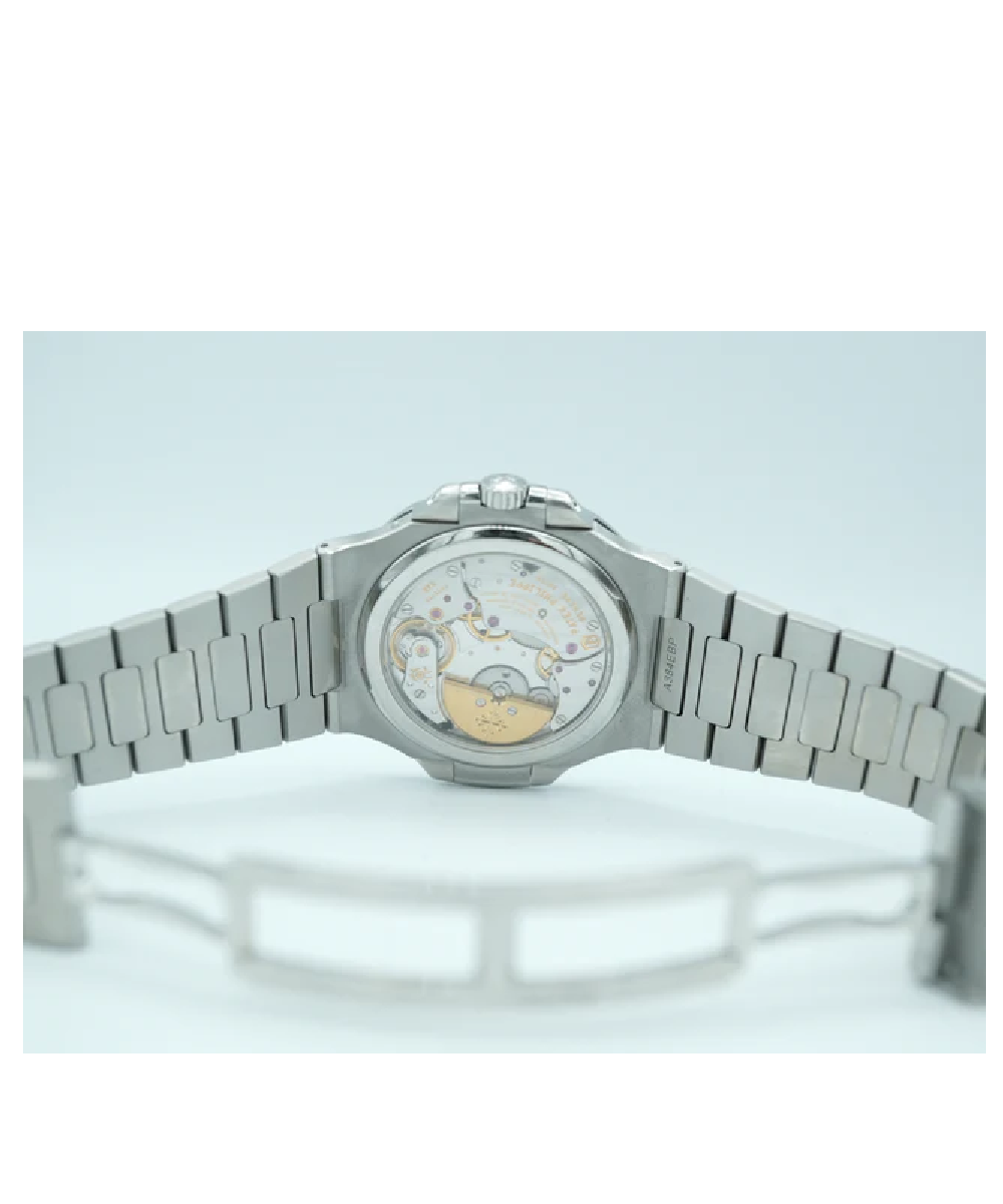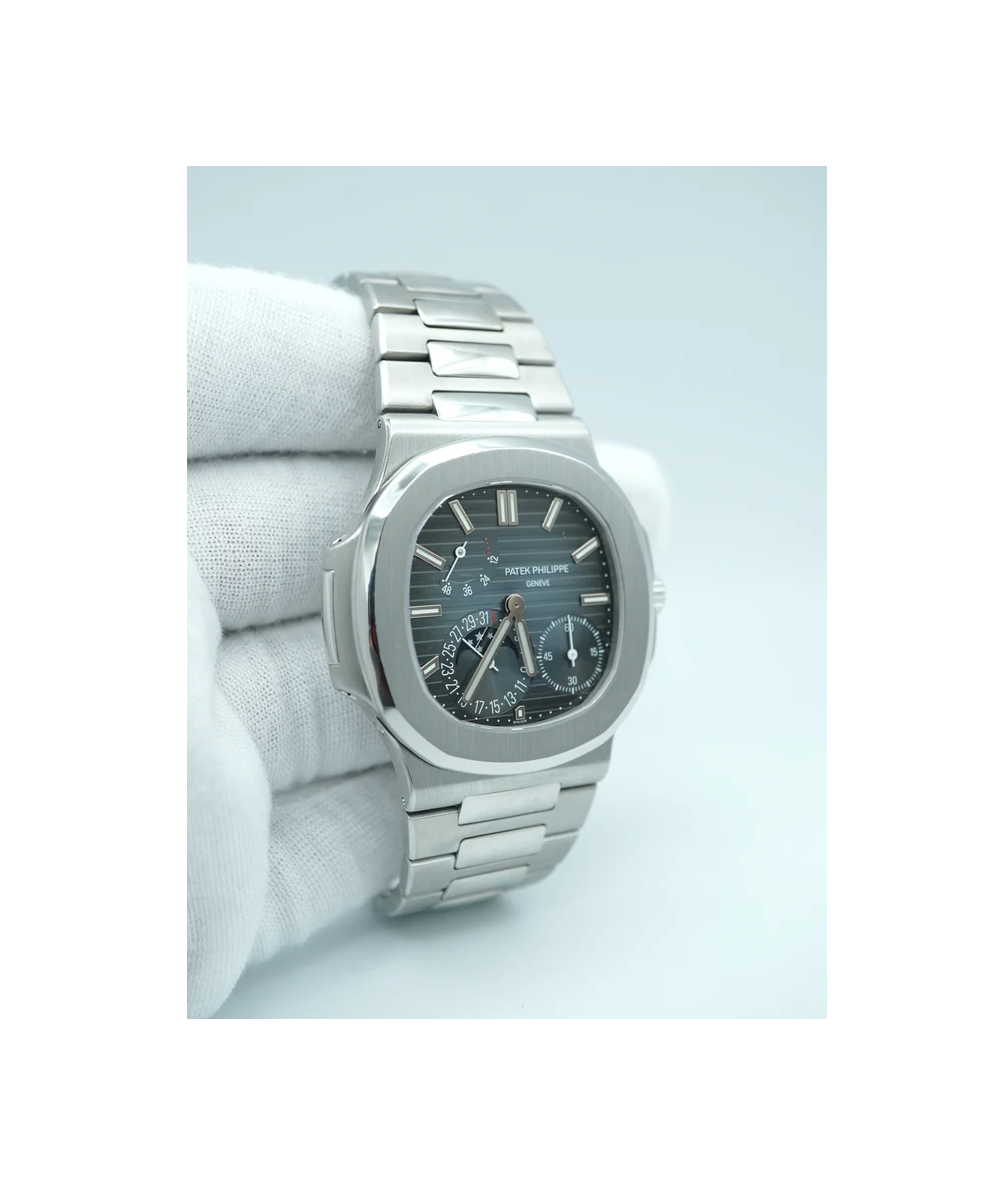 The Patek Philippe 5712/1A-001 Nautilus offers a refined blend of iconic design and technical sophistication. Featuring a 40 mm stainless steel case paired with a striking blue dial, this 2017 complete set model includes a power reserve indicator, date display, and moon phase complication, all arranged asymmetrically to balance functionality with elegant aesthetics. A true collector’s piece, it combines robust sportiness with Patek’s renowned craftsmanship, ensuring durability and prestige in every detail.