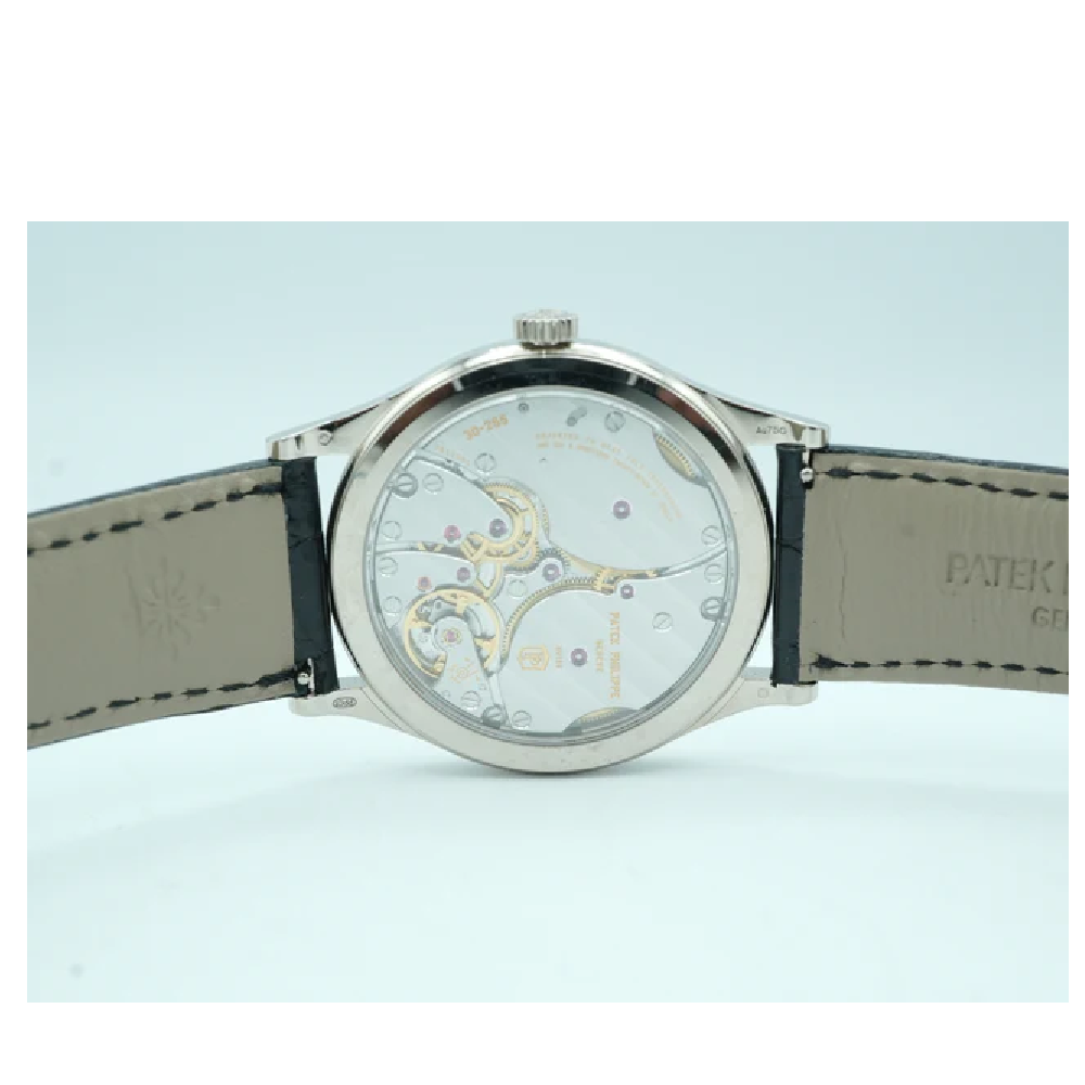 Patek Philippe 6119G-001 Calatrava 18K White Gold Black Dial Black Leather Strap Complete Set 2024