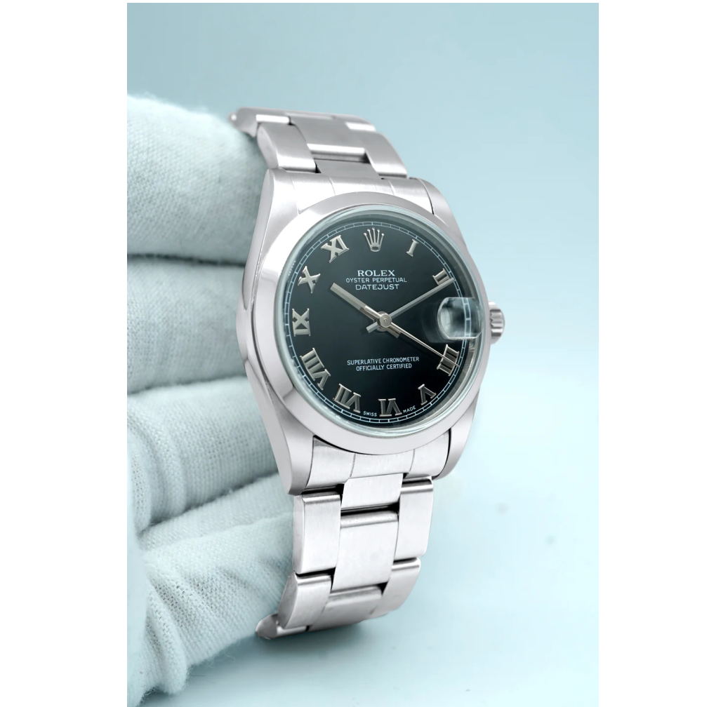 The Rolex 178240 Datejust features a refined 31 mm case with a smooth bezel and a sleek black Roman dial, combining classic elegance with modern precision. Crafted with the durable Oyster bracelet, this 2002 model offers both comfort and resilience. As a complete set, the watch ensures authenticity and collector value, embodying Rolex's commitment to timeless design and reliable craftsmanship. Ideal for those seeking a distinguished yet understated luxury timepiece.