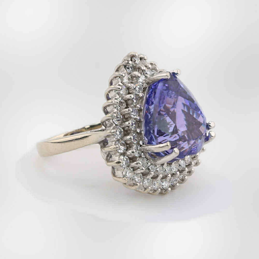 This exquisite Women's Natural Tanzanite & Diamond Ring is expertly crafted in 14k white gold, showcasing a total carat weight of 12.81 carats. The rich, vivid tanzanite is artfully surrounded by brilliant diamonds, enhancing the ring’s overall radiance and depth. Its meticulous design ensures both lasting elegance and comfort, making it an ideal selection for those who appreciate fine craftsmanship and timeless luxury.